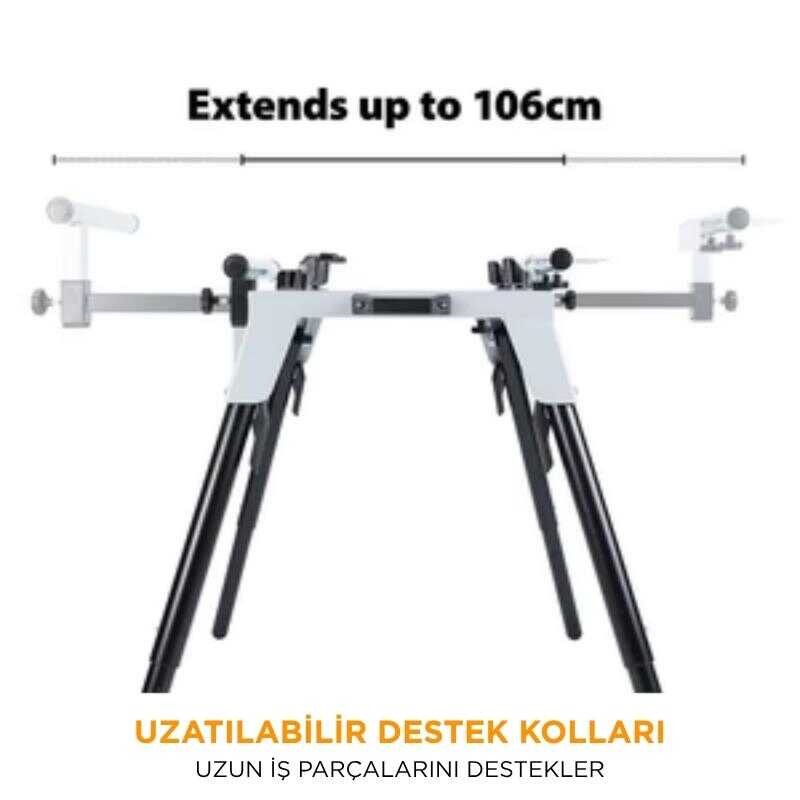 ● Sol ve sağ destek kolları, iş parçası desteğini 106 cm’ye kadar genişletir.