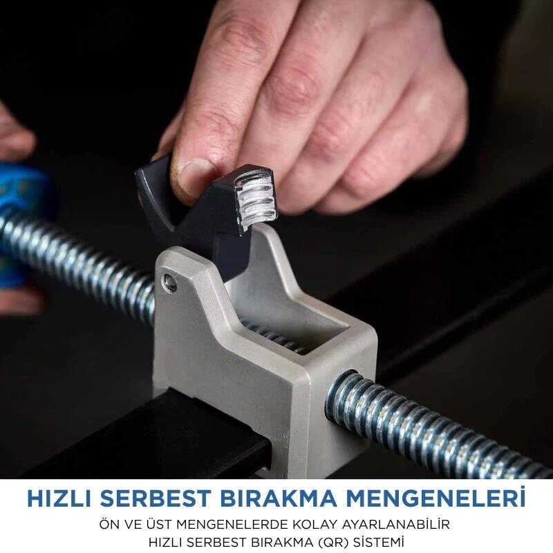 ● Güvenli sabitleme: Üç hareket eksenli, çift kayar ön mengeneler, her şekil ve boyuttaki metali güvenle sabitler.