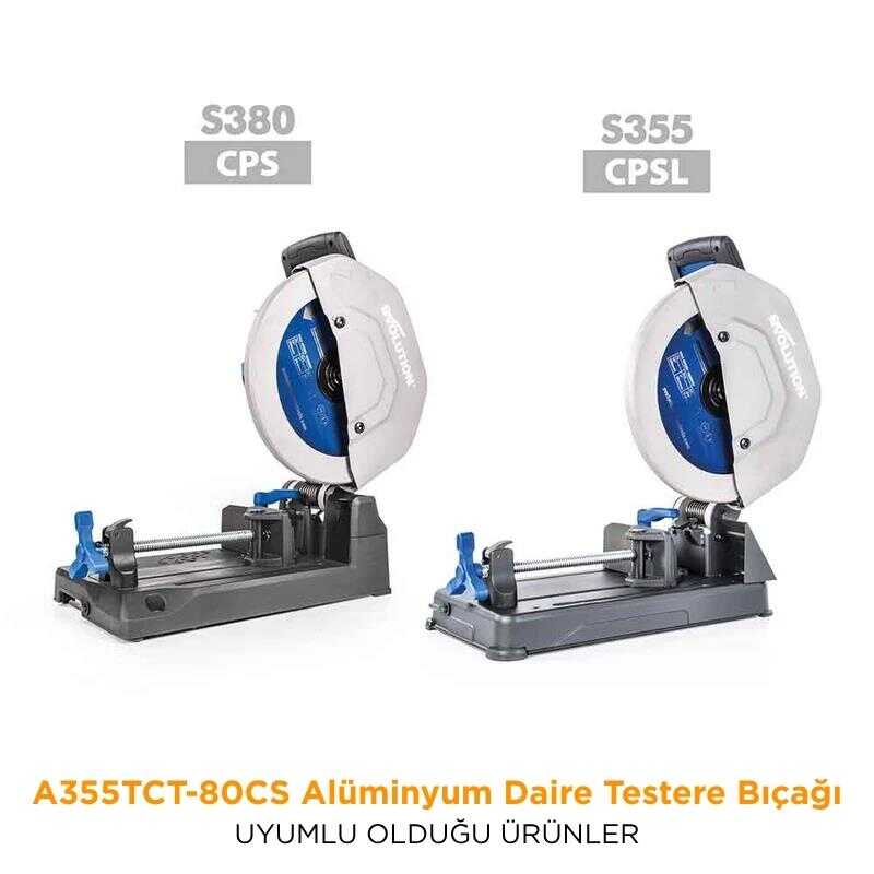 ● Evolution A355TCT-80CS 210mm, 80 Tooth, Tungsten Carbide Tipped, Aluminium Cutting Saw Blade. Compatible with all our 355 Mitre Saws.