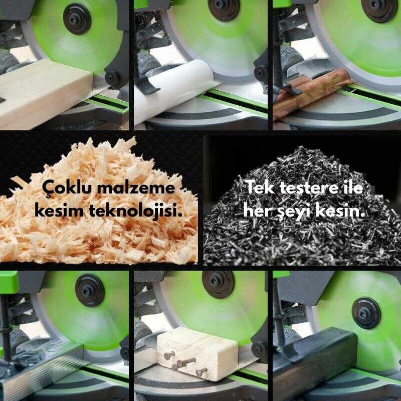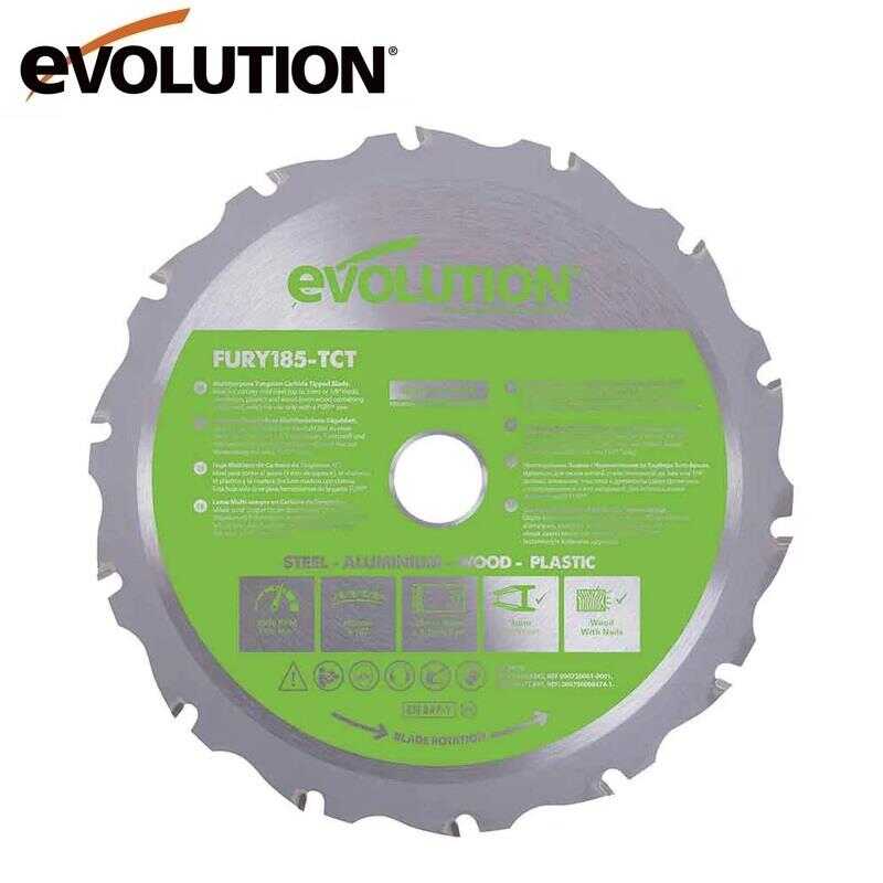 ● Evolution 185 mm, 16 dişli çoklu malzeme kesim bıçağı; yumuşak çelik, alüminyum, plastik, ahşap ve hatta gömülü çivili ahşap gibi farklı malzemeleri kesmek için tasarlanmıştır.