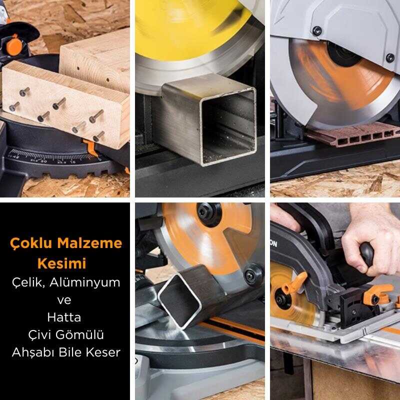 ● Çoklu malzeme kesim teknolojisi: çelik, alüminyum, ahşap (gömülü çiviler dâhil), plastik ve diğer malzemeleri kesebilir.
