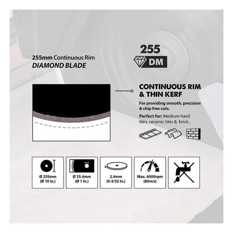 ● Evolution 255mmmm continuous rim diamond blade for cutting masonry on any of our 210mm Mitre Saws.